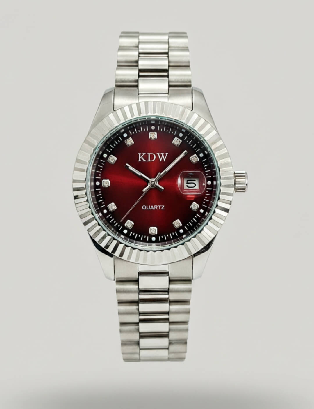 Crafted with a durable stainless steel case and matching metal bracelet, this watch offers both strength and comfort for daily wear. The fluted bezel enhances its classic appeal, giving it a premium, eye-catching finish. Powered by reliable quartz movement, the KDW watch delivers precise timekeeping you can depend on. Perfect for formal occasions or elevating your everyday look, this timepiece blends modern style with classic craftsmanship.